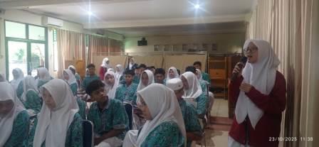 Dalam kegiatan tersebut, tampil dua sosok siswa yang menjadi bintang utama. Hania dari kelas 8-4 berperan sebagai pembicara, sementara Olivia, teman sekelasnya, tampil sebagai moderator. Keduanya berhasil memandu acara dengan lancar dan interaktif, membuat para peserta yang berjumlah sekitar 40 siswa terlibat aktif sepanjang sesi.
