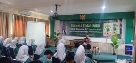 Ruang multimedia MTsN 24 Jakarta Timur tampak lebih hidup dari biasanya pada Rabu dan Kamis, 22-23 Oktober 2025 pagi. Suasana penuh rasa ingin tahu dan semangat memenuhi ruangan saat kegiatan review dan bedah buku berjudul “Langkah Menemukan Diri” karya para siswa kelas 8 digelar. Buku ini merupakan kumpulan cerita reflektif yang terinspirasi dari hasil tes kecerdasan majemuk (Multiple Intelligences) berdasarkan teori Howard Gardner, yang sebelumnya dilakukan dalam jam layanan Bimbingan dan Konseling (BK).